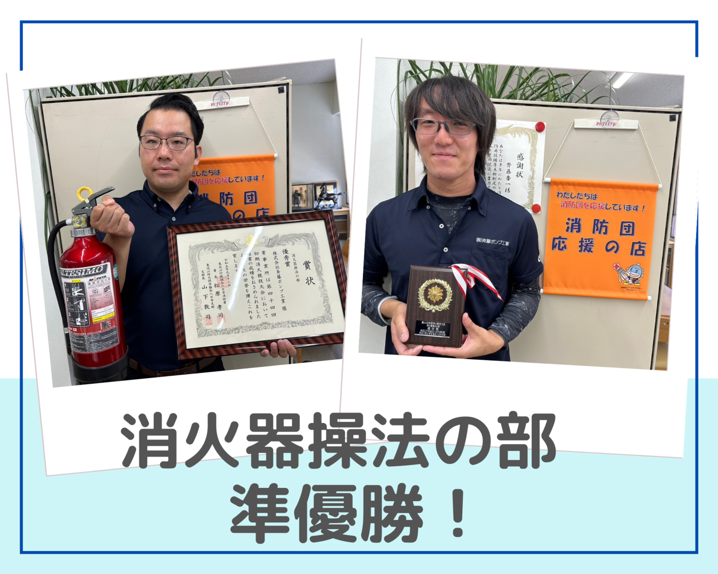| 2023.09.14 | 東近江行政組合八日市消防署主催の消火器操法の部において、 11チームがエントリー 弊社が準優勝いたしました!