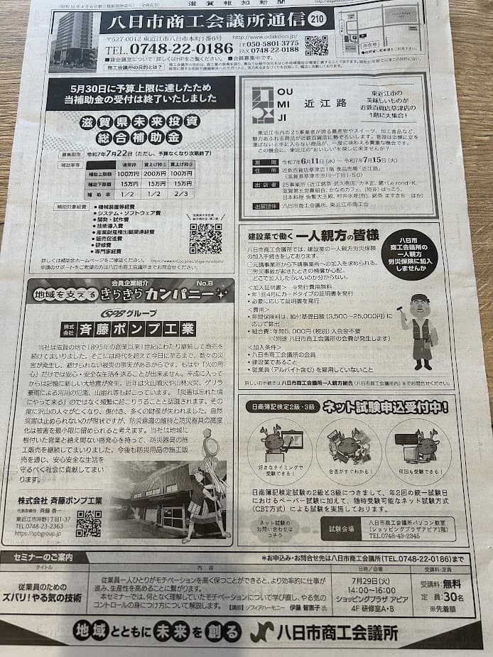 | 2025.06.01 | 「八日市商工会議所通信」にて、弊社をご紹介いただきました。